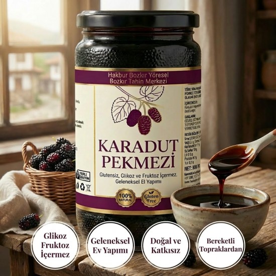 - saf karadut pekmezi ev yapım net: 800 gr olgunlaşmış tatlı karaduttan geleneksel olarak yapılmıştır renklendirici koruyucu ve tatlandırıcı içermez.