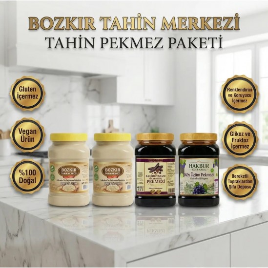 Doğal ve katkısız sadece susamdan geleneksel taş değirmende öğütülmüş beyaz tahin çiğ tahinlerimiz 935 gr 2 adet Geleneksel ev yapım köy üzüm pekmezi 950 gr Geleneksel ev yapım köy keçiboynuzu pekmezi 950 gr Dörtlü set şeklinde gönderilecektir renklendirici koruyucu tatlandırıcı glikoz fruktoz içermez gluten içermez vegan üründür Sofraların vazgeçilmezi tahin pekmezlerimiz şifa deposu yüksek lif kaynağıdır değirmenden direkt taze üretim olarak gönderim sağlamaktayız - Geleneksel taş değirmen ile öğütülmüş doğal beyaz tahin, otantik lezzet deneyimi sunar.